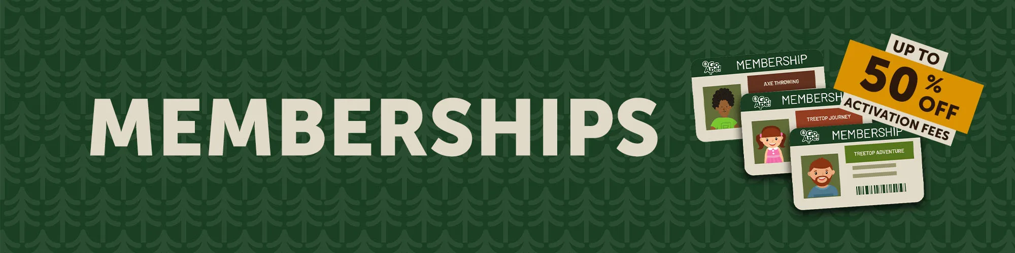 A monthly membership is $15/month per person, plus a one-time $49.95 activation fee. If you pay annually, you save approx. $3/per month. This gets you unlimited access to ALL ziplines and ropes courses at your local Go Ape (approximately a $100 value per visit). You can also visit other Go Ape courses – just give us a call and we’ll activate your membership there!